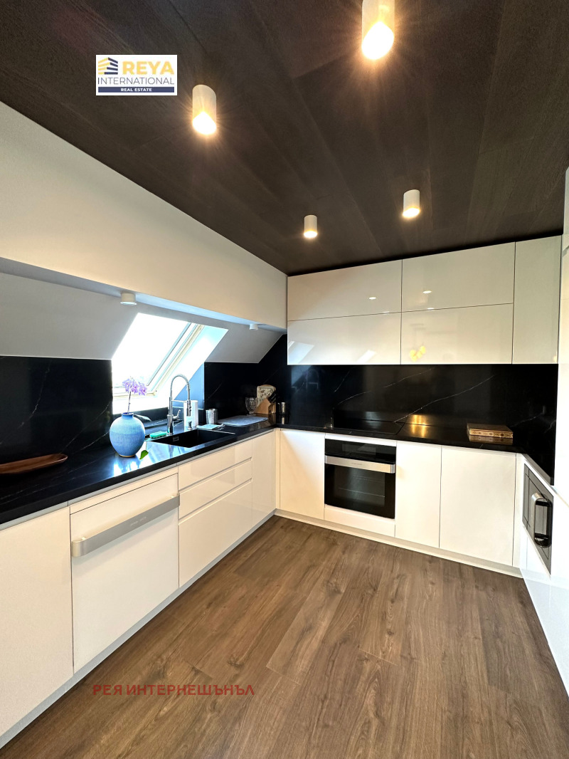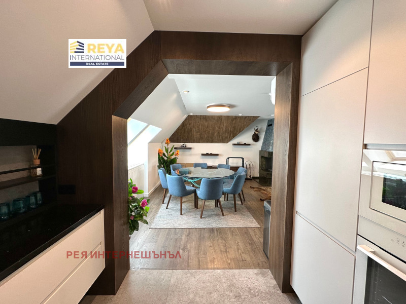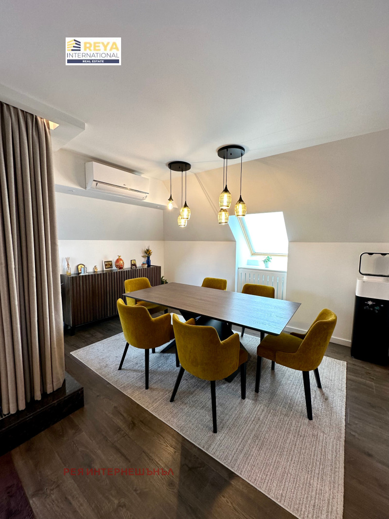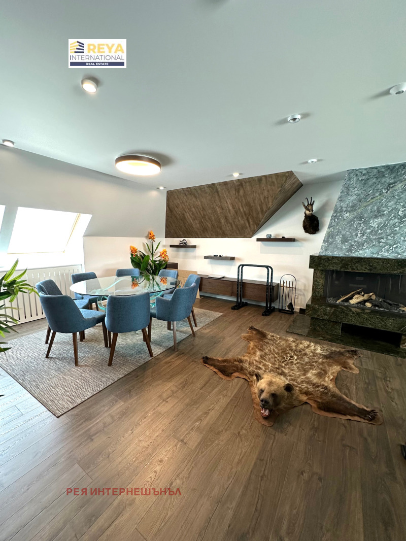 Апартаментът е разположен в отлична монолитна сграда с 24-часова охрана, асансансьор с чип само за апартамента, на седми етаж от осем етажна сграда и е с площ от 383 кв.м. Просторен с панорамни прозорци с най-висок клас алуминиева дограма, капандури Велукс, централен ТЕЦ, електрическо котле, термопомпа за охлаждане и отопление, две партиди за трифазен ток, две камини.