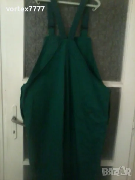 Снимки 1-4 , Син работен полугащеризон, талия 53 см, крачол 80 см. Снимки 5- 7, Зелен полугащеризон, 60 размер, талия 63 см, крачол 80 см. Цена за брой 30 лв.