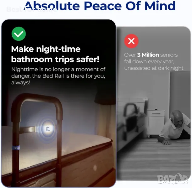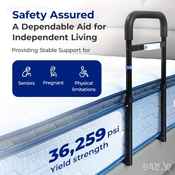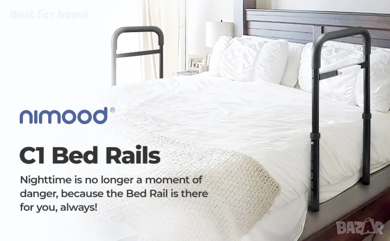 Надеждна компактна опора за легло: Осигурявайки стабилизираща опора, компактната преграда за легло nimood е идеална за възрастни хора и хора с ограничена подвижност. Компактната преграда за легло позволява на хората да седят и да се изправят самостоятелно с по-голяма лекота, минимизирайки риска от падане и повторно нараняване.