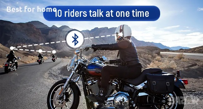 Мотоциклетните слушалки B4FM могат да свържат 10 ездачи в обхват от 2000 м. След свързване няма нужда да натискате бутони за разговор.