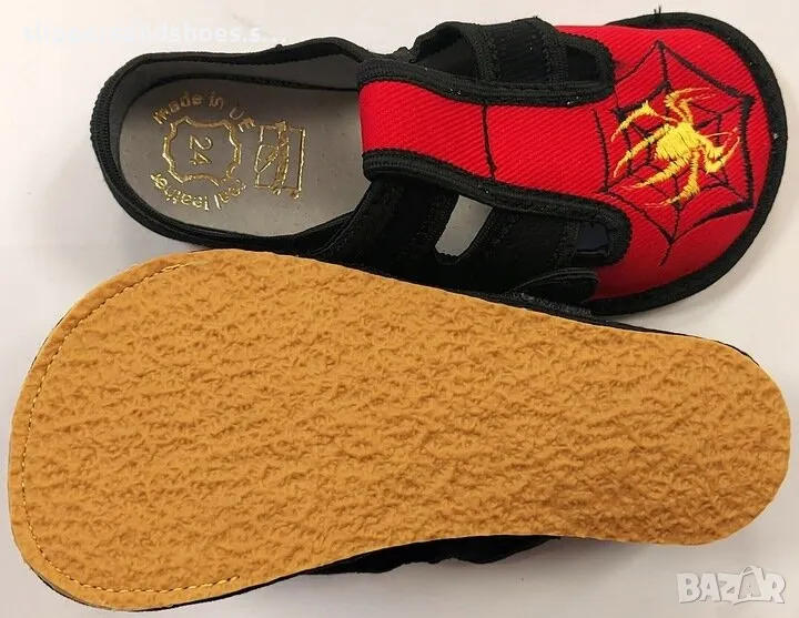 Детски боси пантофи , предназначени да осигурят на децата максимален комфорт и здравословно развитие на краката. Благодарение на гъвкавата подметка, чиято форма позволява възпроизвеждане на босо ходене, обувките се адаптират към всяка стъпка, като се грижат за стойката и облекчават гръбначния стълб. Естествената и ефирна горна част поддържа краката в правилната позиция, а неплъзгащата се подметка им позволява безопасно да се придържат към земята. Пантофките са с стелкаа от естествена кожа в комбинация с активен въглен. Естествената кожа осигурява хигиенични свойства, абсорбира и отвежда влагата и предпазва от триене. Активният въглен има антибактериални и противогъбични свойства и абсорбира неприятните миризми. Чехлите са идеални за детска градина, училище и като домашни обувки. Благодарение на гъвкавата и широка подметка, обувките са много удобни и не ограничават крака при ходене.