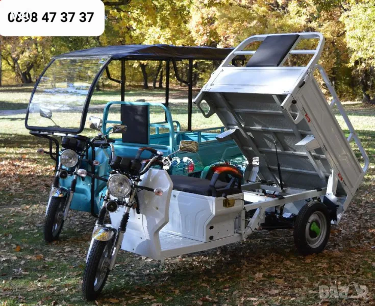 Електрическа триколка CARGO TRANSPORTER S-800 модел 2026 година. Това е най-мощната, най-високопроходимата и най-подсилената триколка от своя клас предлагана на пазара. Триколката е предназначена за извозване на товари до 600 килограма във стопанства, ферми, земеделски дворове и други. Изключително ефективна, без излишни разходи вие ще имате един незаменим помощник във вашата ферма или стопанство. Триколката е снабдена с карго отделение което се спуска и вдига със амортисьор, както и всички канати се спускат.