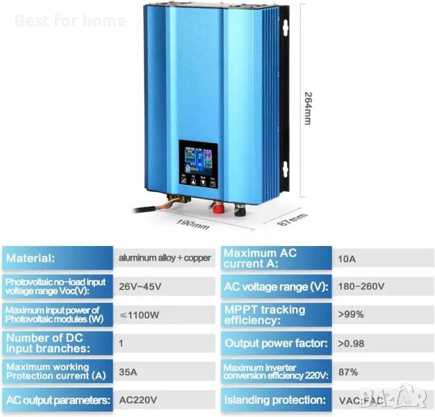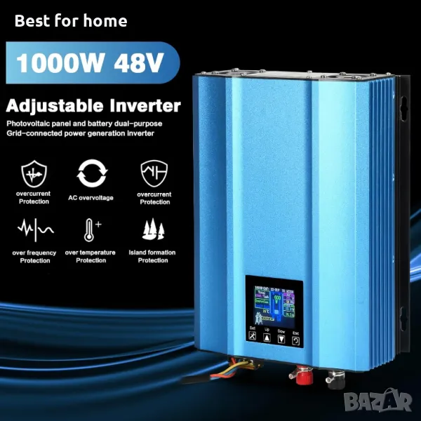 【Регулируем инвертор】Инвертор за генериране на енергия с двойно предназначение, свързан към мрежата, с фотоволтаичен панел и батерия. Подходящ е за различни фотоволтаични енергийни панели и може да се свързва и с батерии за постоянна връзка към мрежата. Този 1000W соларен инвертор, свързан към мрежата, има три режима (нормален режим/нормален режим против обратен поток, режим против захранване от батерията).