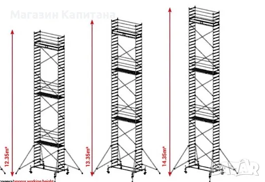 Алуминиево скеле Арон 12,35м., 13,35м., 14,35м. работна височина.