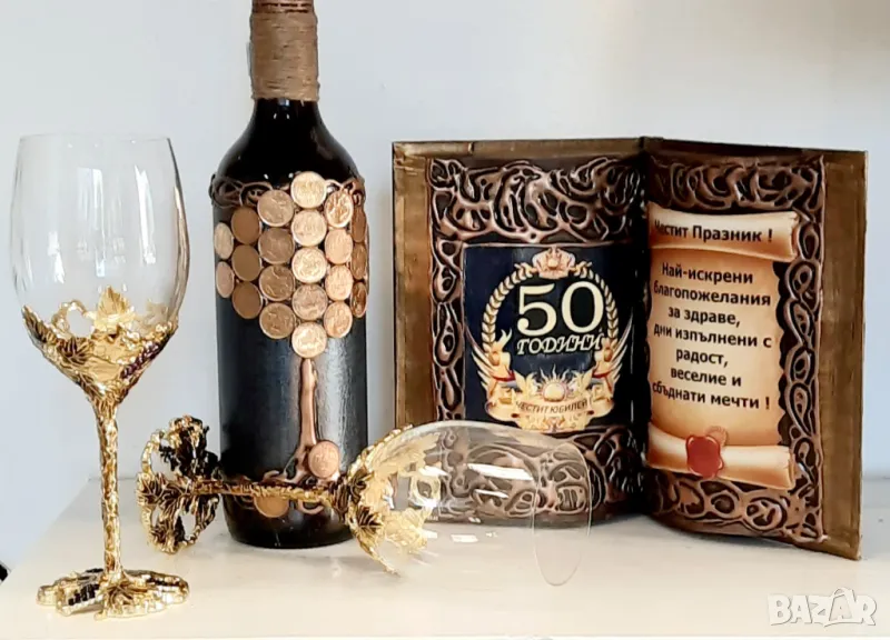 Оригинален подарък за 50 годишен юбилей с пожелание за финансов просперитет, късмет, благополучие и дълъг живот.