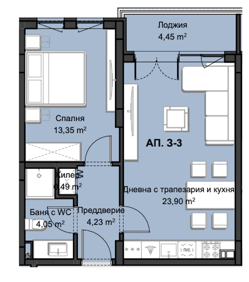 ➡ Състои се от преддверие, баня с тоалетна, килер, спалня, дневна с кухня и трапезария, тераса и е с обща площ от 75,3 кв.м. Към имота има и избено помещение!