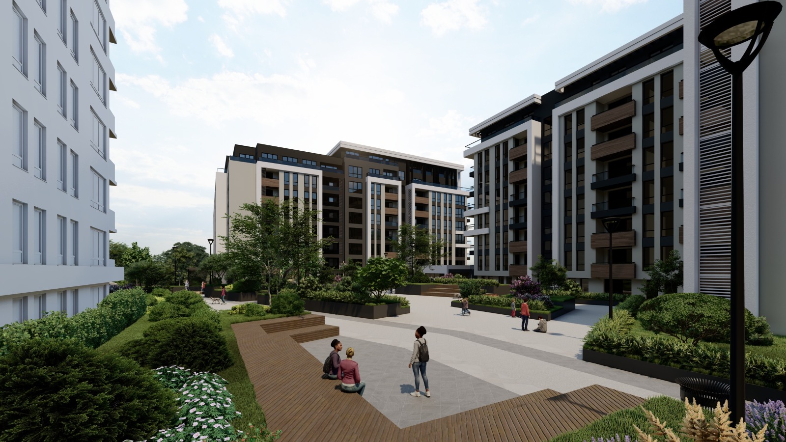 6000 кв.м паркова среда - вътрешният двор на сградата е оформен с кътове за отдих и детска площадка