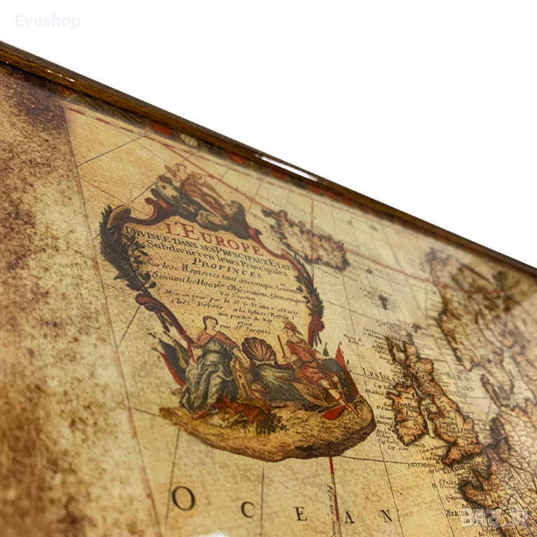 Отразяваща естествената текстура на дървото, Антична Карта Табла е изработена от висококачествен MDF. Като продукт от премиум клас, тя е идеална за подарък, декорация или лична употреба. Античните детайли и принтът на стара световна карта ѝ придават класически вид. Гланцовото защитно покритие гарантира издръжливост и дълготрайна употреба.