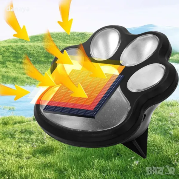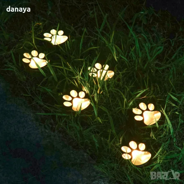 Тези соларни лампички за забиване в земята с форма на лапички ще внесат топла и приятна атмосфера в градината ви. Работят със соларно захранване, презареждат се от слънцето през деня и светят в мека жълта светлина вечерта. Подходящи са за пътеки, дворове, градини и цветни лехи.