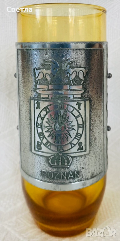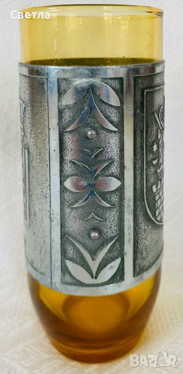3.Старинна чаша от стъкло,с метален обков. € 25