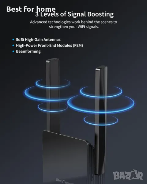 Мощен WiFi двубандов екстендър , покриващ до 204㎡ BrosTrend