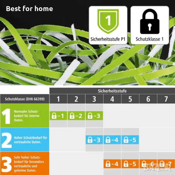 Шредер Strip-Cut за до 6 листа хартия DIN A4 (80 g/m2) с една операция.