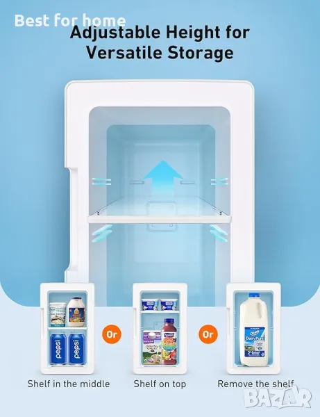 Адекватен капацитет: Подобреният интериор лесно побира до 8 кутии от 355 мл или 4 бутилки с вода от 20 унции. Подвижният рафт ви позволява лесно да съхранявате напитки, козметика и храна на различна височина.