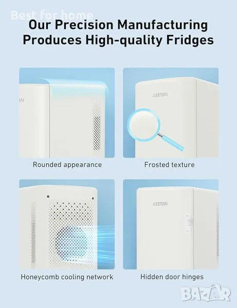Практичен и стилен: Компактният хладилник има футуристична естетика, множество функции и система за намаляване на шума. Обновеният хладилник за грижа за кожата AstroAI 6L е първият избор за спални, офиси, общежития, пътувания и други.