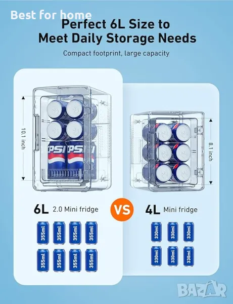 Мини Хладилник 2.0 Ген. 6 Литра/8 Канички .Преносим Термоелектрически Охладител 110V AC/12V DC