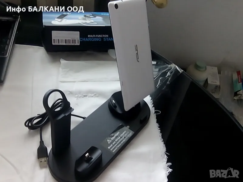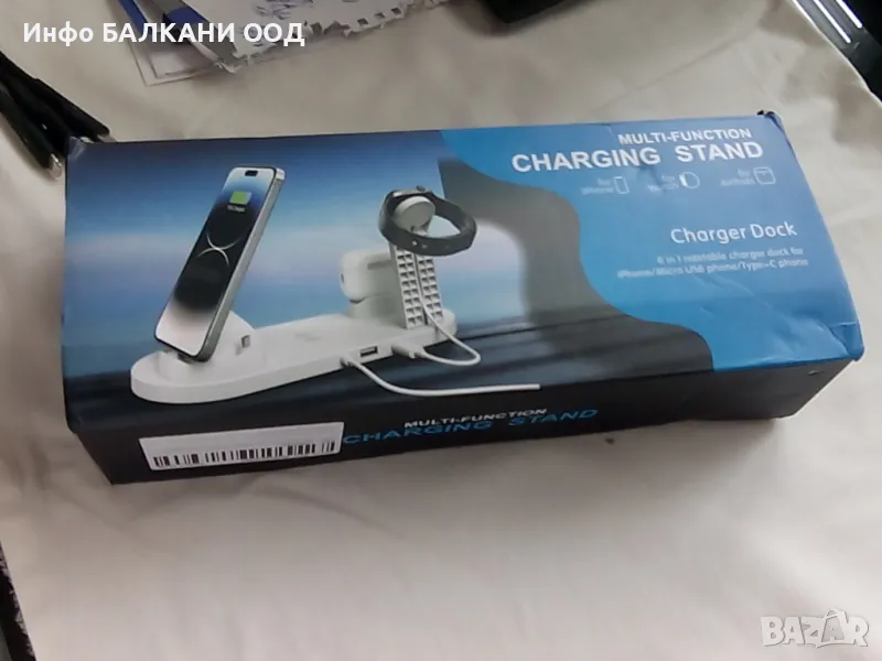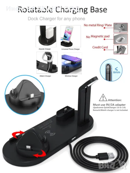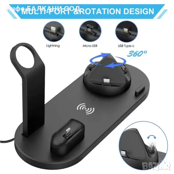 Apple Watch, Airpods, iPhone/Samsung. 3-конекторната основа може да се завърта на 360°, подходяща за iPhone,