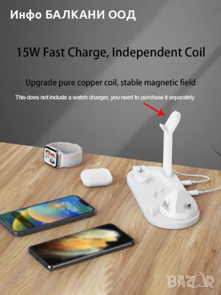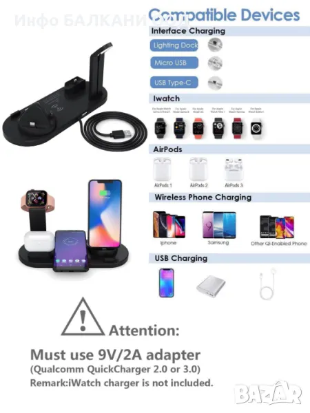 конектора, iWatch, зарядно за Airpods и един USB изход в един държач, поддържа едновременно зареждане на вашия