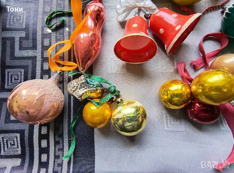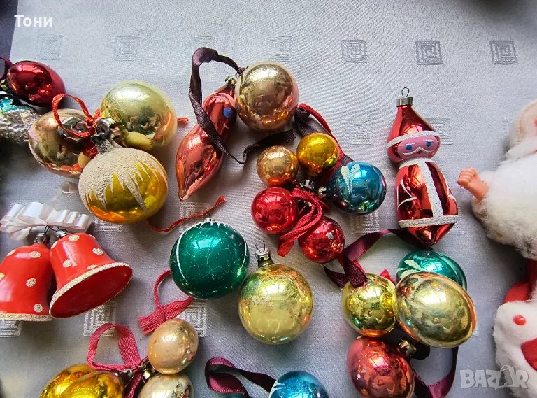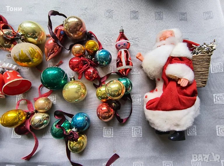 Винтидж стъклени коледни играчки + дядо Мраз → Обява 50178592