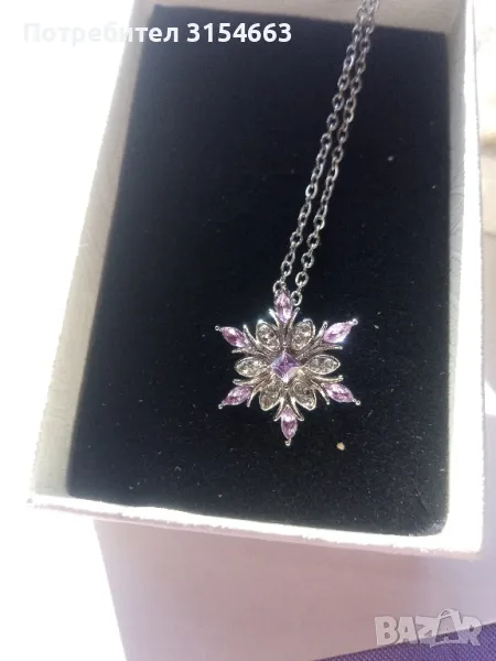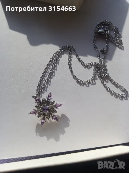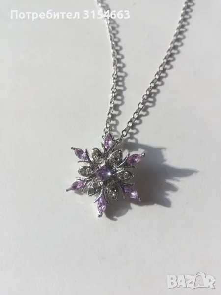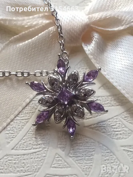 Колие с кристали. Форма на снежинка. С кристали в бяло и лилаво.