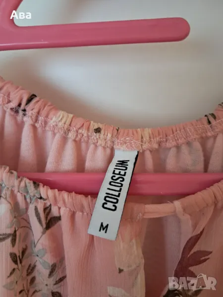 Нежна блуза в розов цял. Ефирни ръкави. С подплата отдолу. Ластично деколте.