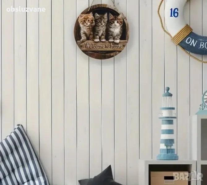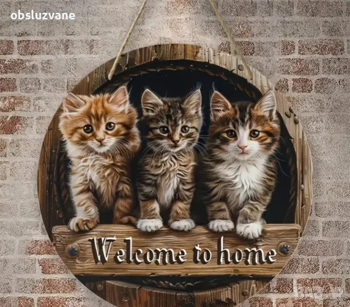1 бр. симпатична приветстваща декорация под формата на дъска с Три котета и надпис "Добре дошли".