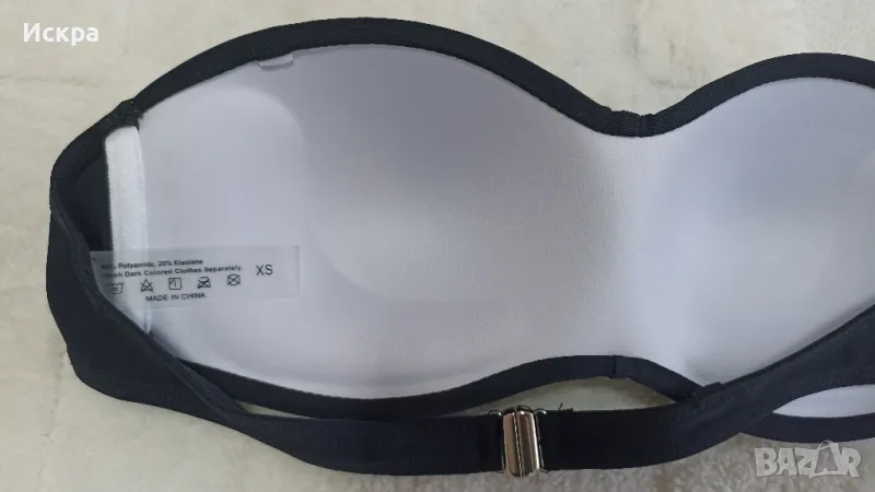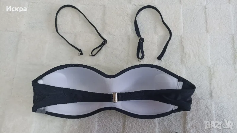 Черен бански костюм, горнището е ново, не е слагано, с леки подплънки е и презрамки, които могат да се махат.