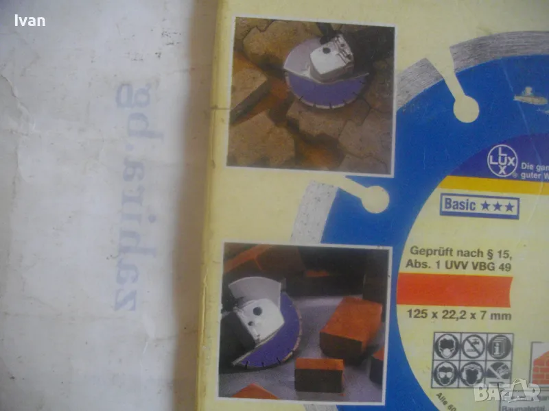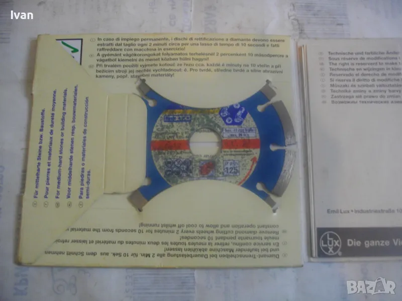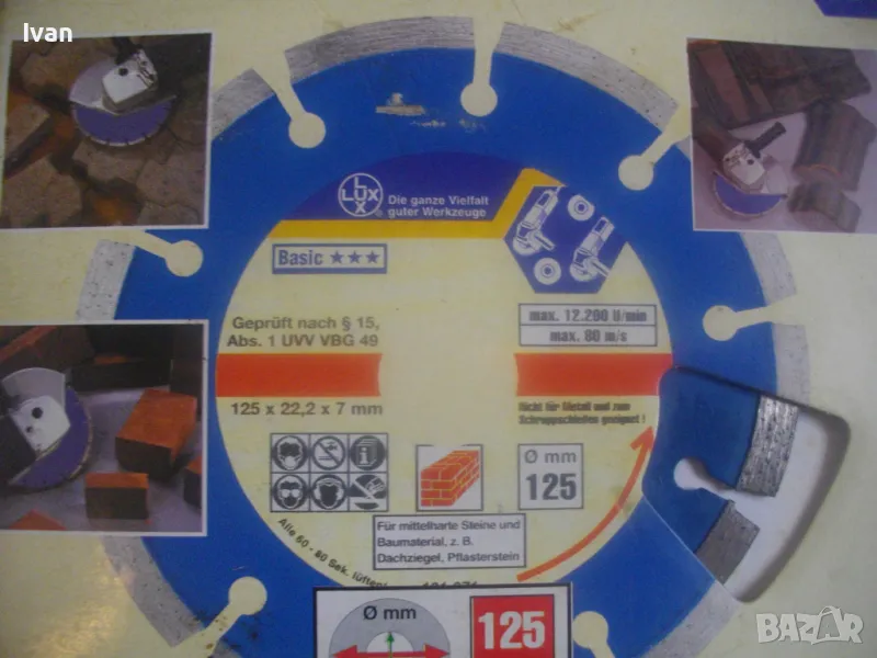 Диска LUX е по инструкции на опаковката си за рязане на клинкер, керемиди, силикатен кирпич, тротоарни бетонови плочи, циментови повърхности, камъни със средна твърдост. Професионален - за машини до 12 200 об/мин скорост. Размер ф125 х 22,3 х 7 мм.В оригиналната книжна опаковка има книжка инструкции за употреба.