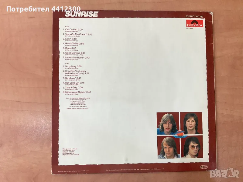 Здравейте, грамофонна плоча 12 инча - Sunrise -Call one me. Не нося отговорност за състоянието на плочите, не почиствам плочи. Вие поемате риск, когато закупувате от мен, ако имате въпроси, може да ми звънете на посочения номер или да ми напишете съобщение. Отговарям след 18 часа, цените не се коментират, ако не се вземат повече от 10 плочи. Благодаря, че прегледахте обявата ми. Лек и спокоен ден!