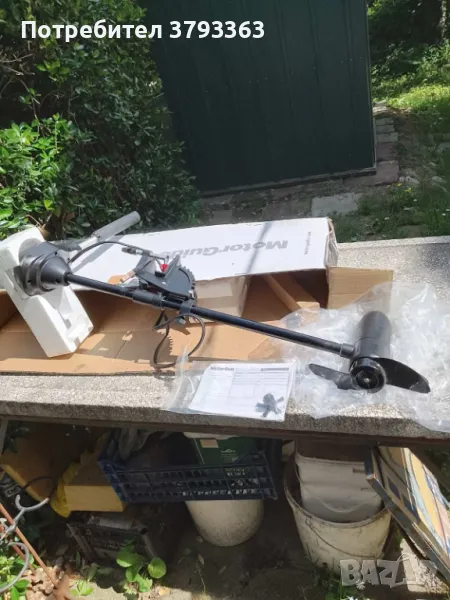 Мотор за лодка електрически мощност 36 lbs /тяга около 18 кг/ НОВ, не потапян във вода, с кутия и ръководство, преди година купен за 340 лв - сега на цена 240 лв, 5 предни и 3 задни скорости, с 80 А автоакумулатор - 3 часа работа по каталог на максимум