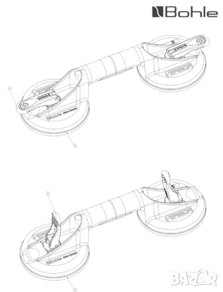 Оригинал VERIBOR Професионална Немска Mетална ЛАПА Вакуумна Вендуза за Стъкла Плоскости и др. БАРТЕР