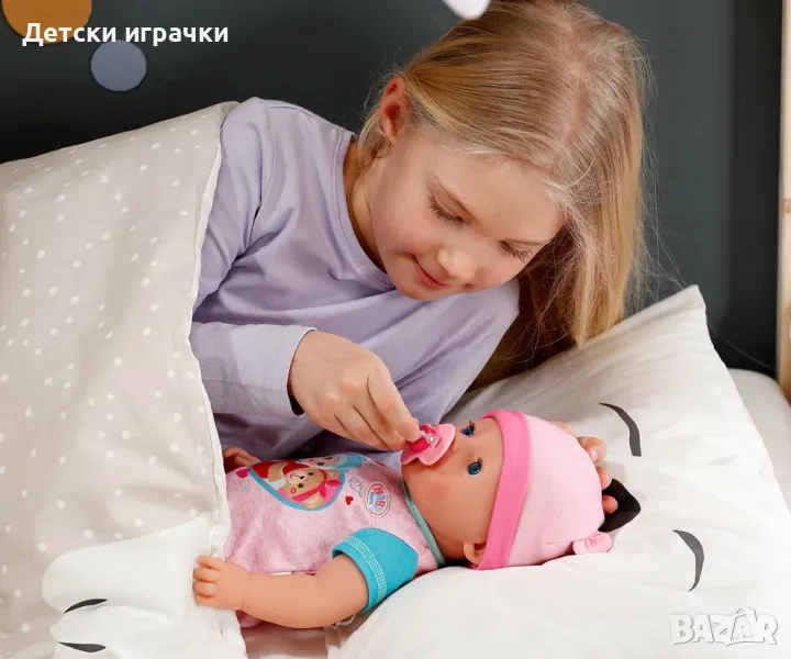 Емма е налична в нейното очарователно ново облекло и се предлага с 10 аксесоара за отваряне на свят на реалистична, възпитаваща игра. Всеки аксесоар е направен със забавно внимание към детайла, включително новата магическа чиния – просто използвайте вода, за да разкриете вкусна храна за вашето бебе или я сложете на гърнето, след като се наслади на яденето си, и натиснете корема й, за да я видите как отива до тоалетната като голямо момиче, водата дори ще разкрие ако в гърнето!
