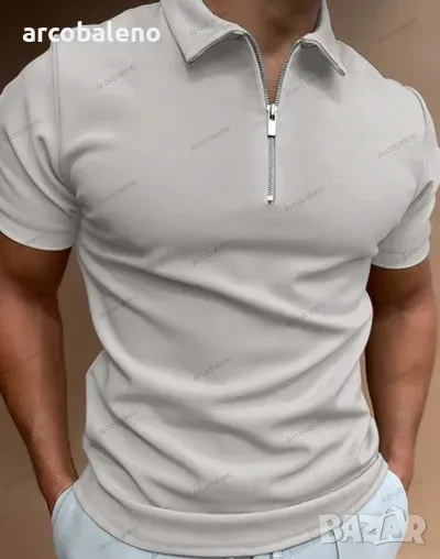 Мъжка едноцветна поло блуза с къс ръкав и ревер, 5цвята