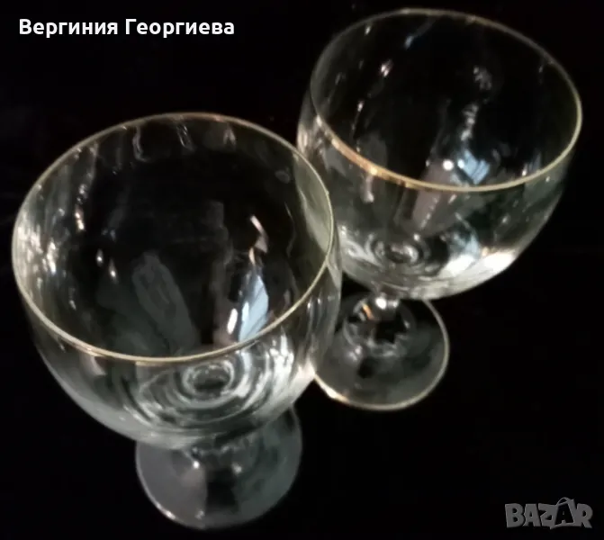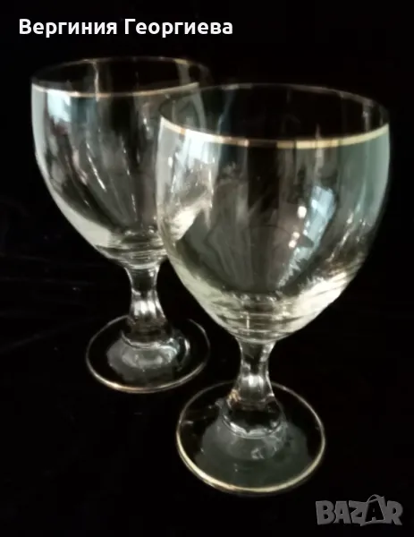 Чаши за вино с позлата по ръба и по столчето - 2 броя. Височина - 14 см, диаметър - 7 см, вместимост - 150 мл.