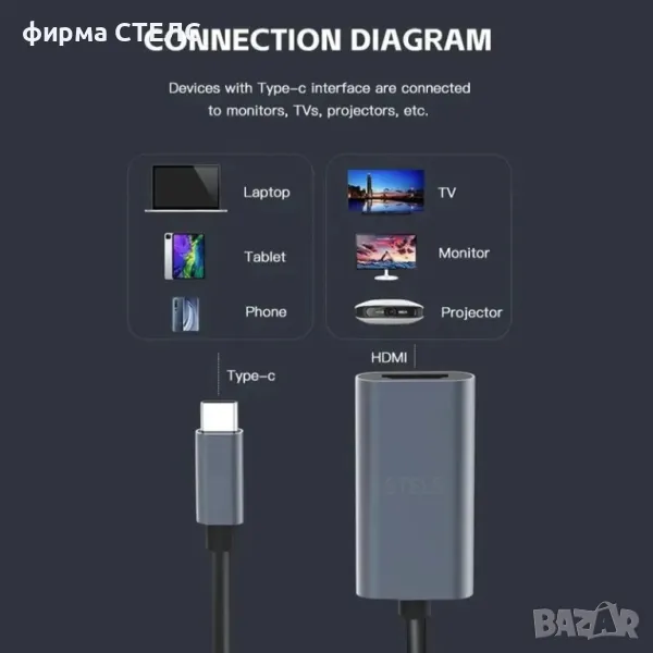 1 х Адаптер USB-C към HDMI STELS U200