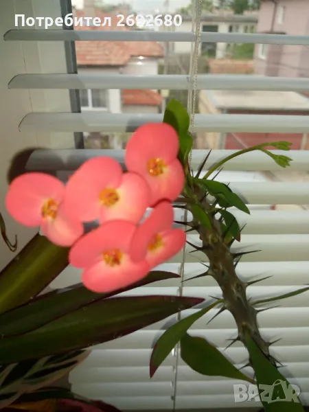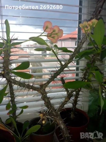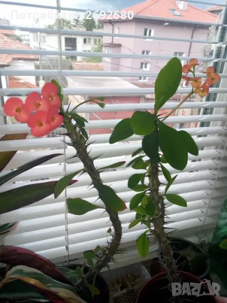 Исусов венец цвят - червено към розово, растенията с височина до 35см., цена - 25лв., височина до 40см. - 35лв., височина 45-50см.- 45лв.
