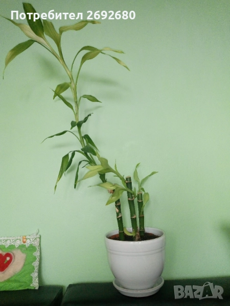 Бамбук 4бр. в хубава нова бяла керамична саксия с подложка, най-високото растение - 80см., цена - 25лв.(цената включва и керамичната саксия, саксията е нова, без забележки, в идеално състояние е).