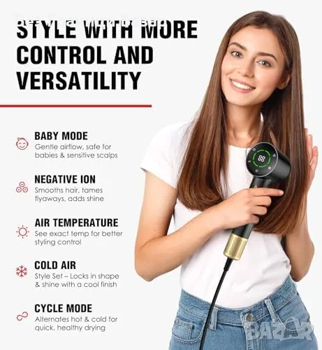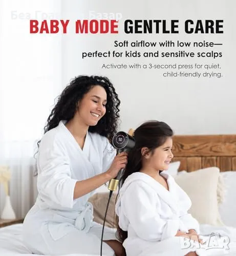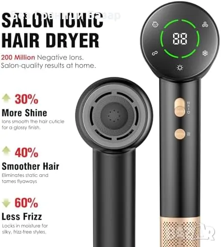Нов Мощен Сешоар с Дифузер 110000RPM, 200М Йони, LCD, 1600W, 3 скорости