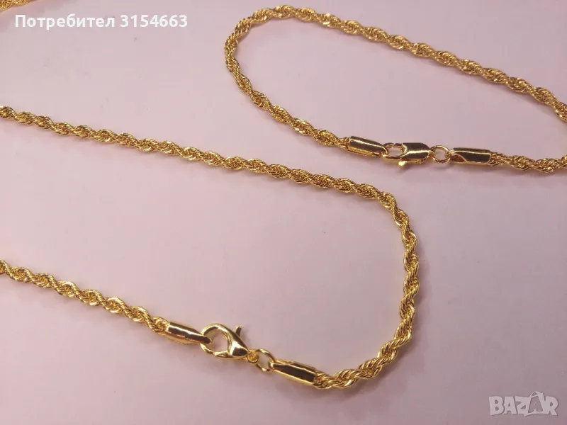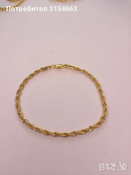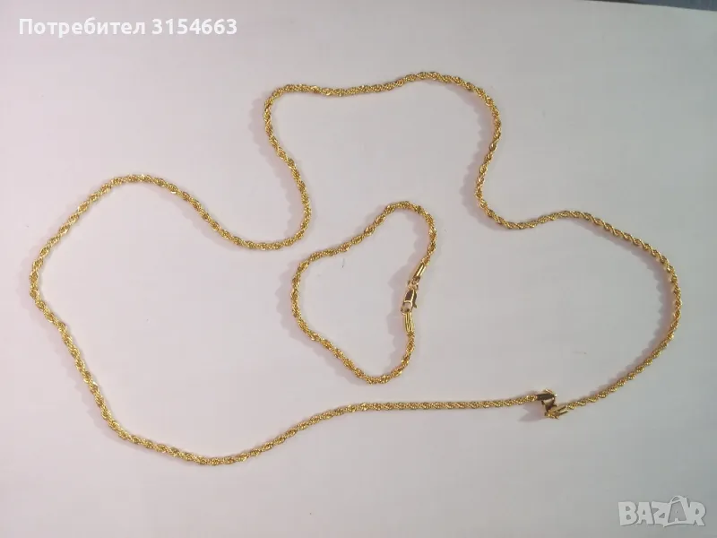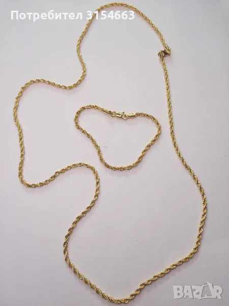 Верижка с дължина 75 см и ширина 0,3 см. Гривна с дължина 20 см и ширина 0,3 см.