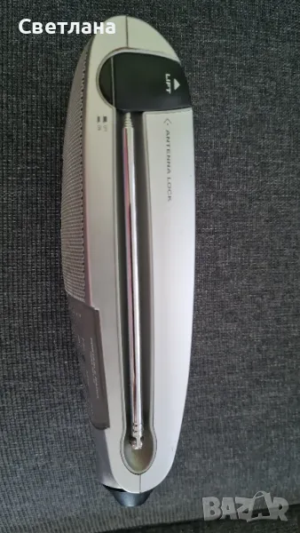 FM/MW/SW радио с много хубав прием и звук за размерите си. Работи на 230V или 4×R14 батерии. Размери: 240×140×50 мм. Антената е права и гнездото е чисто. Много дълъг живот на батериите (консумация 8 mA на FM). Има леки козметични забележки по корпуса.