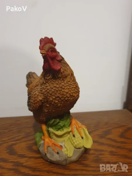 Детайлна и цветна фигурка на кокошка, стояща сред тревичка и пиленца. Перфектна за дома, кухнята или като част от рустик декор.