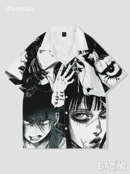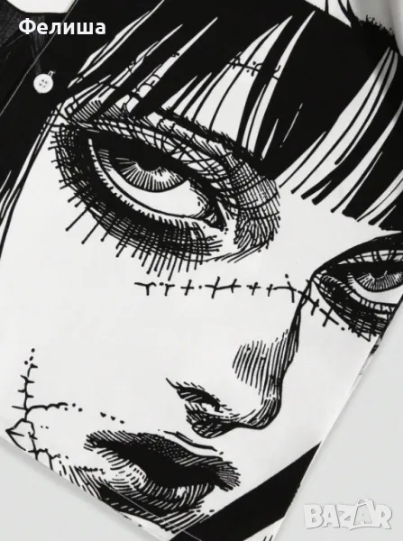 Уникална Мъжка Риза Аниме / Манга / Арт Хорър Лица Дизайн → Обява 50185695