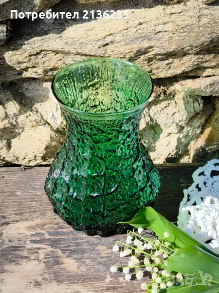 Винтидж декоративна ваза от зелено структурирано стъкло