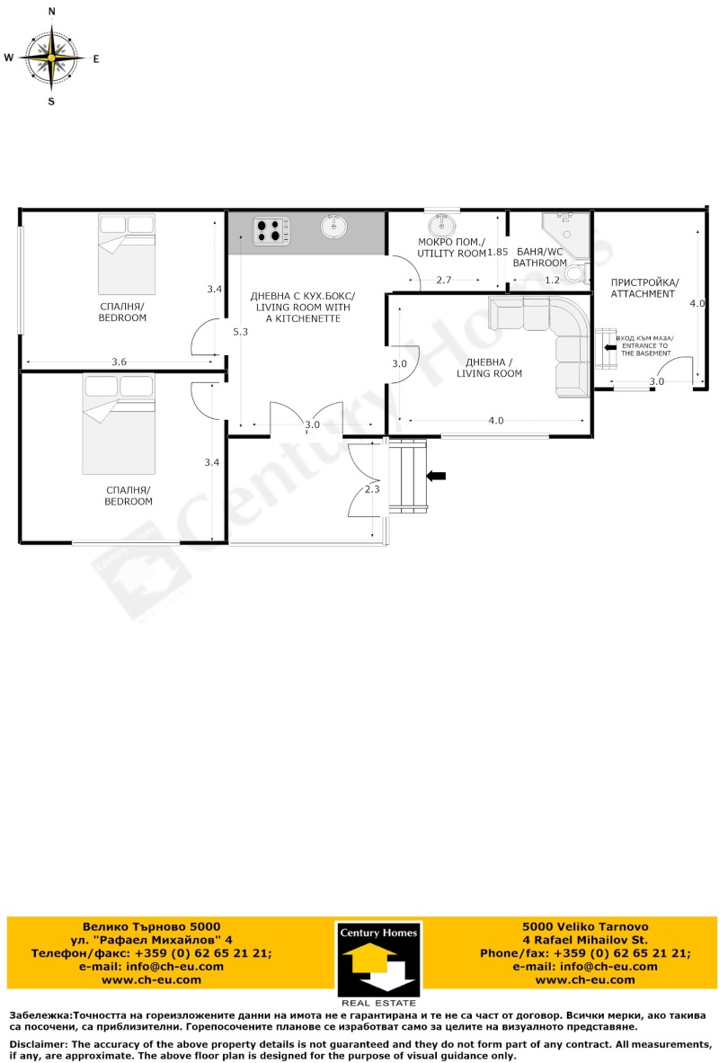 Допълнителна стая, долепена до дясната страна на къщата, осигурява достъп до мазето отлично за склад или допълнително жилищно пространство.