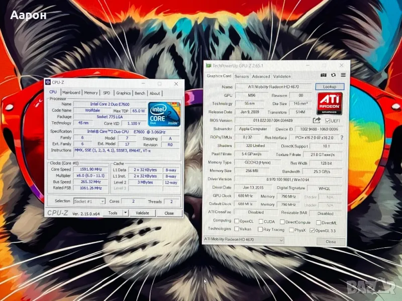 Дъно с процесор и видео карта