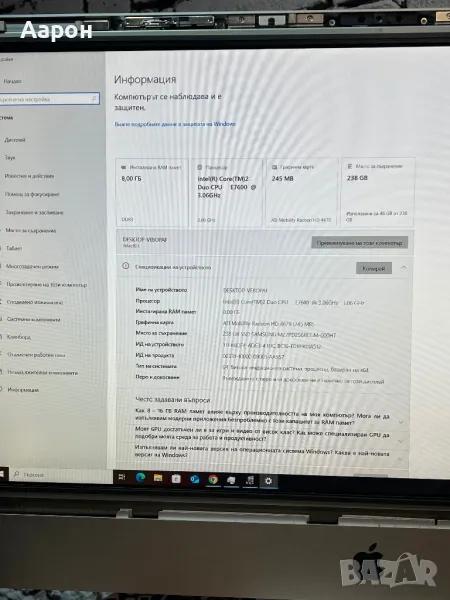 Компютъра е без предпазното стъкло.
