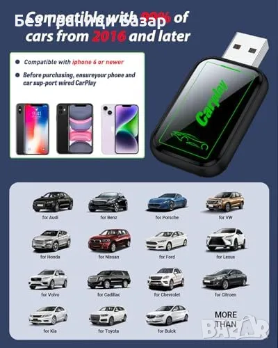 Нов Wireless CarPlay адаптер Diyauder за коли след 2016 Plug & Play