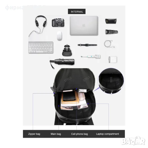 Раница за лаптоп STELS Q90, стилна и практична, изработена