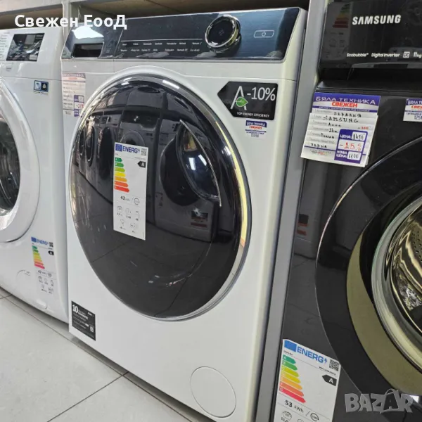- hOn App: Свържете пералнята си с приложението hOn, за да получите достъп до допълнителни функции, като персонализирани програми за пране, съвети за поддръжка и отдалечено управление.