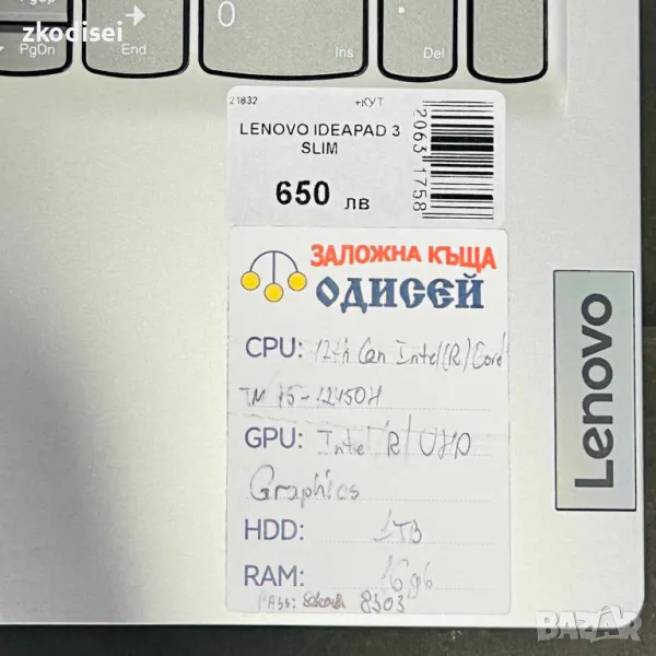 Лаптоп LENOVO IDEAPAD 3 SLIM 15,6 Инча → Обява 50189168