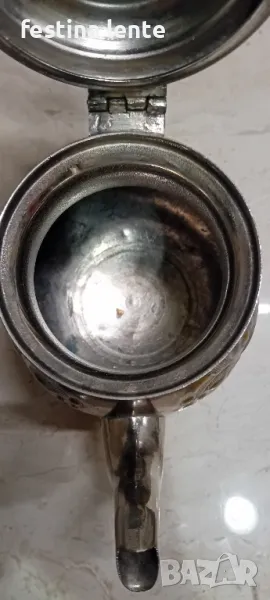 Стар,посребрен,месингов чайник с маркировка.
